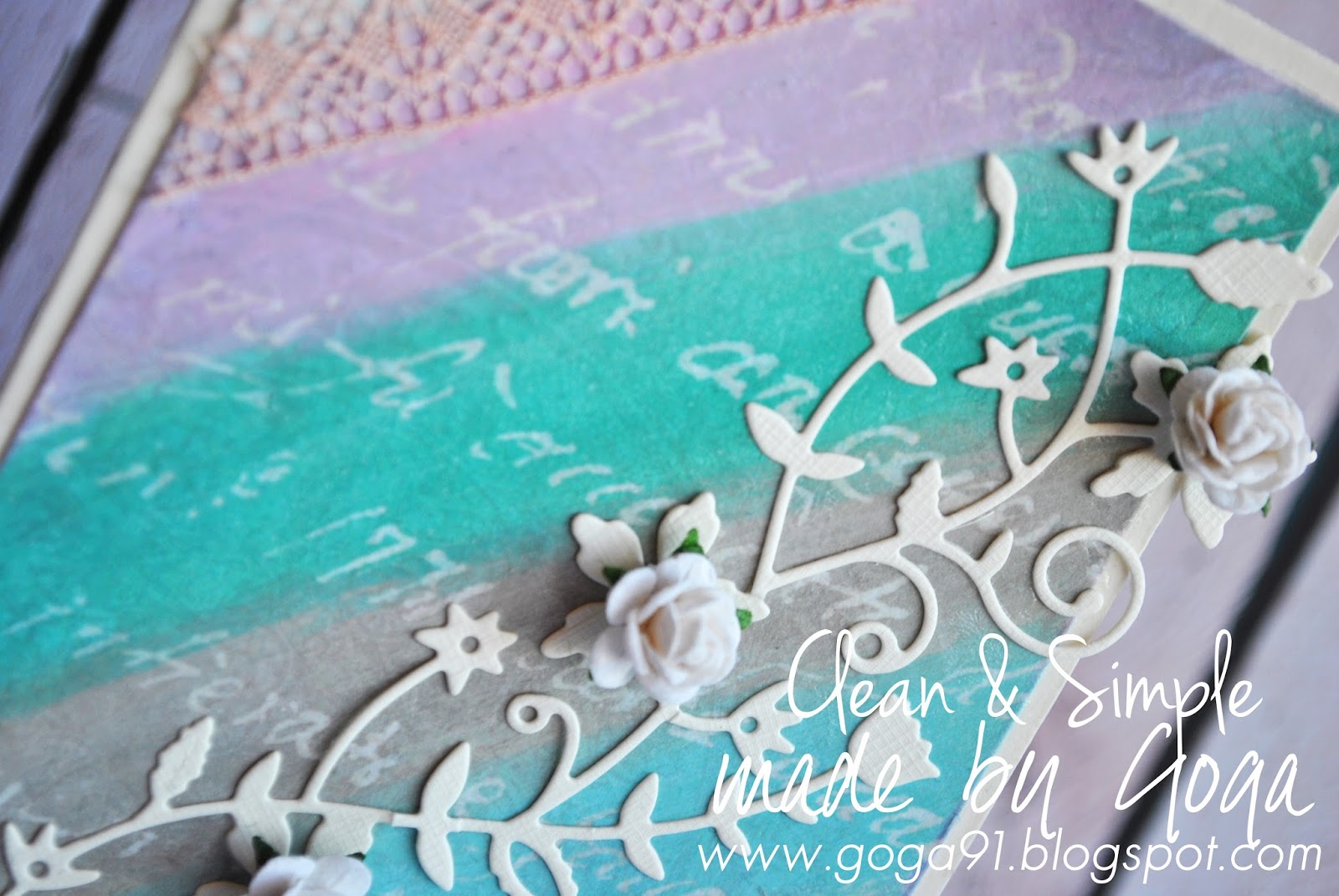 I'd like to show you today my wedding card for March Clean&Simple challenge at Scrap'n'Skill. I painted paper by Prima Marketing pastel chalks.